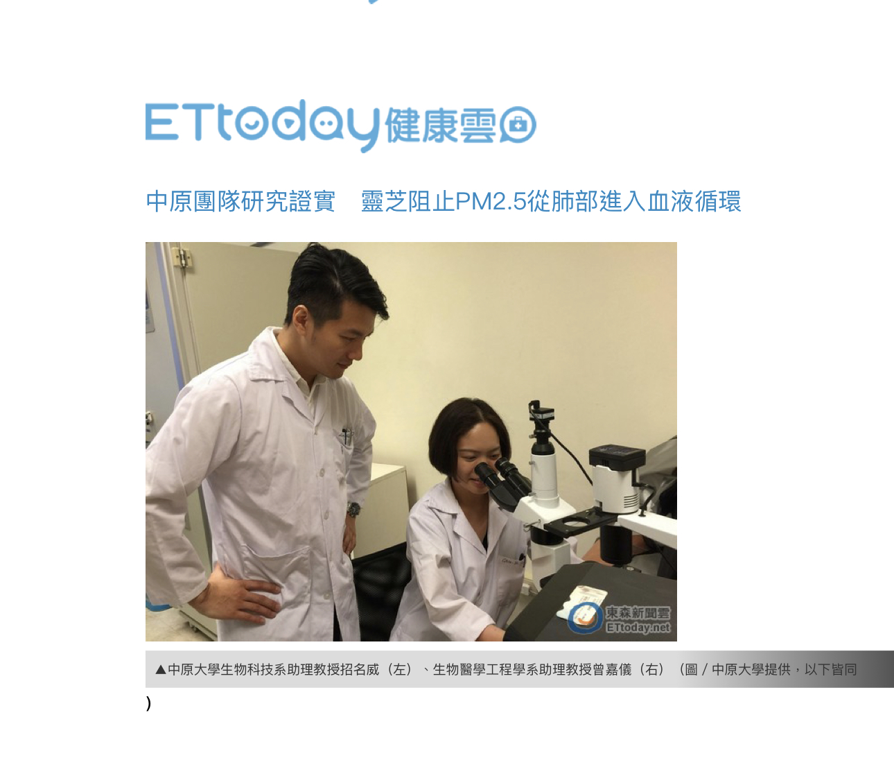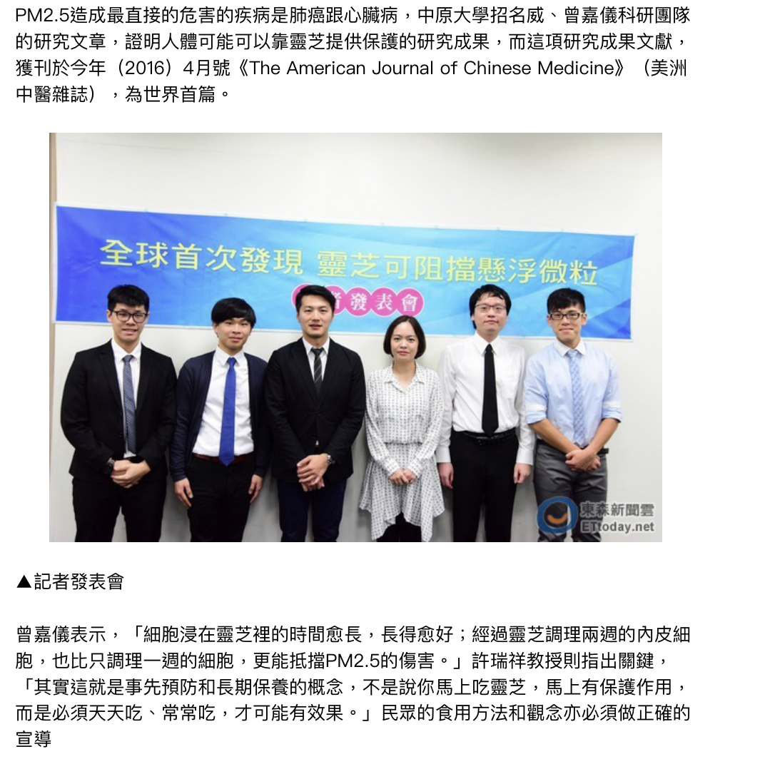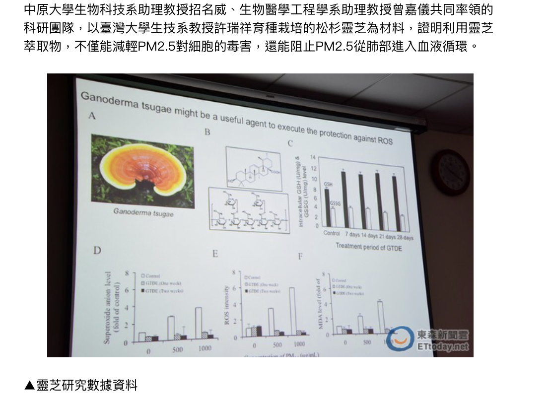 中原大學發表:『靈芝』可擋PM2.5進入人體,登上國際期刊